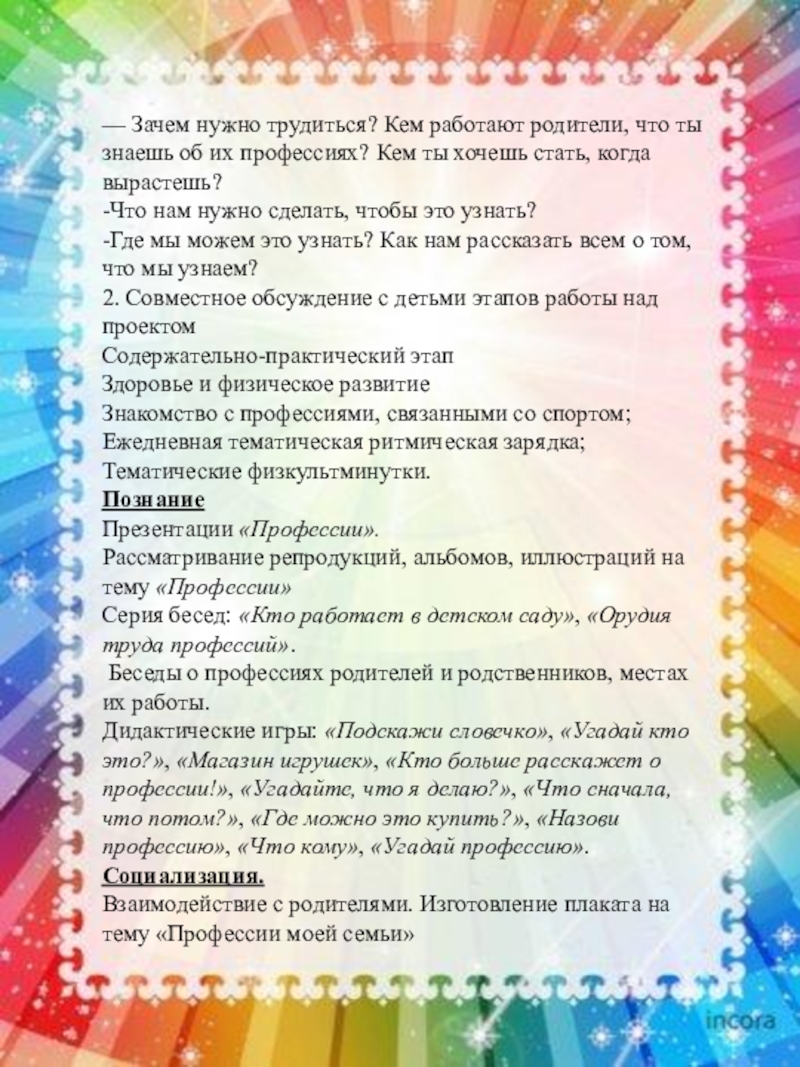 — Зачем нужно трудиться? Кем работают родители, что ты знаешь об их профессиях? Кем ты хочешь стать, когда вырастешь?