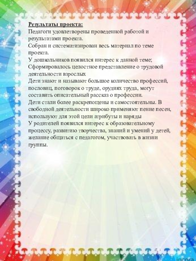 Педагоги удовлетворены проведенной работой и результатами проекта.