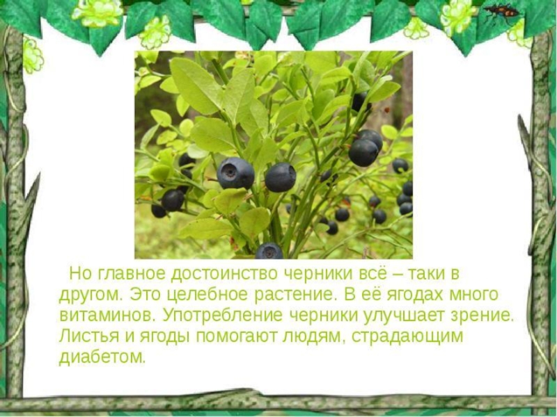* Русское название «черника» растение получило от цвета ягод и от того, что они чернят руки и рот.