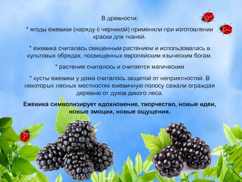 * В русском фольклоре малина символ сладкой привольной жизни – «Не жизнь, а малина».