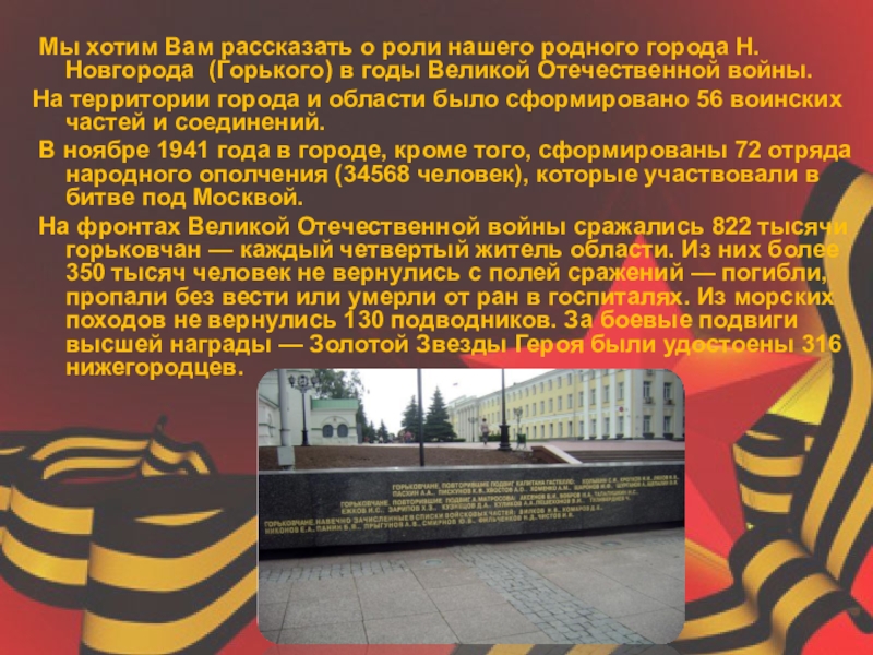 Слайд 4 Мы хотим Вам рассказать о роли нашего родного города Н.Новгорода
