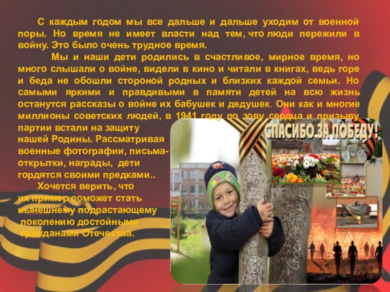 Слайд 11 С каждым годом мы все дальше и дальше уходим от военной