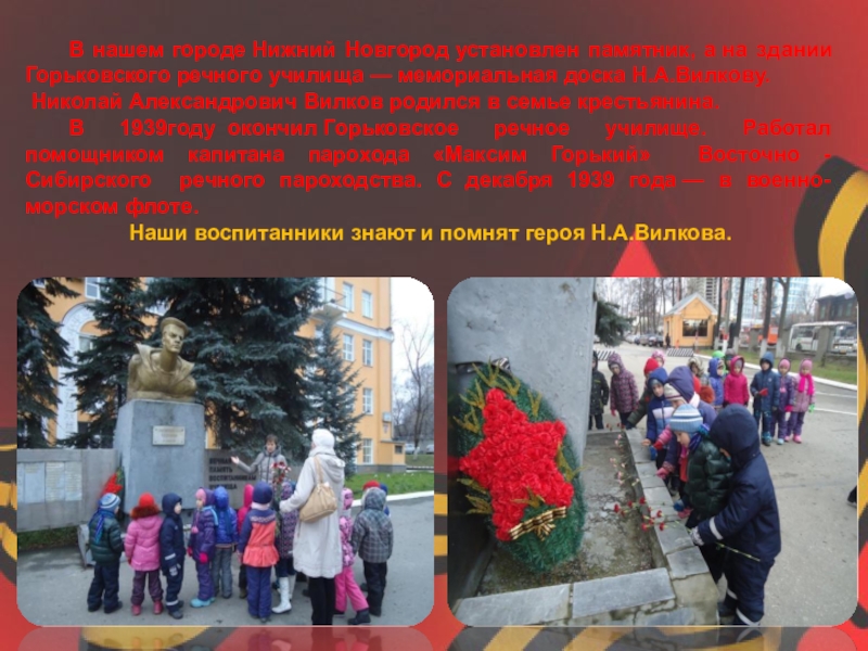 Наши воспитанники знают и помнят героя Н.А.Вилкова.