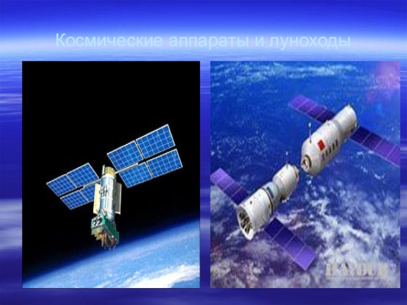 Слайд 38Космические аппараты и луноходы