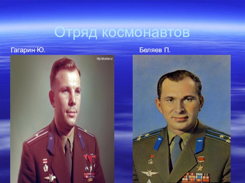 Отряд космонавтовГагарин Ю.Беляев П.