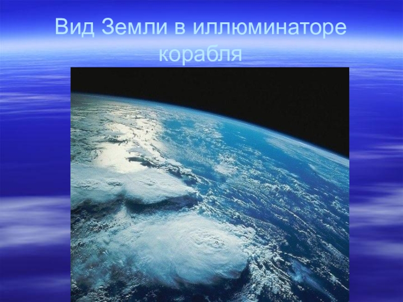 Слайд 19Вид Земли в иллюминаторе корабля