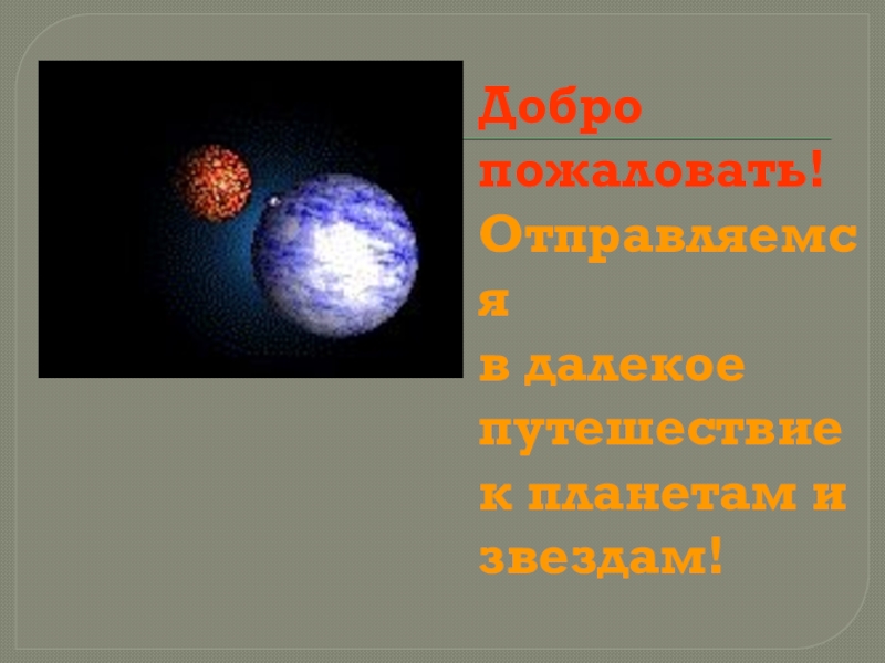 Добропожаловать!Отправляемся в далекоепутешествиек планетам извездам!