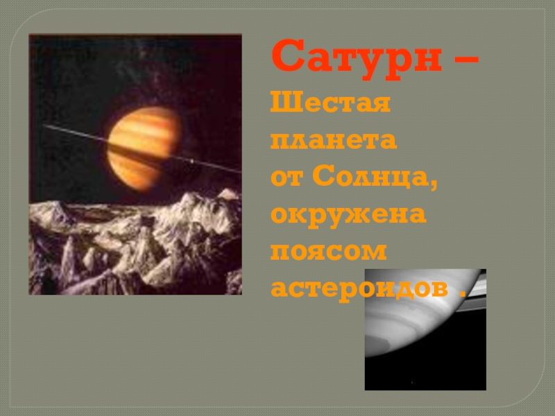 Сатурн –Шестая планетаот Солнца, окружена поясом астероидов .