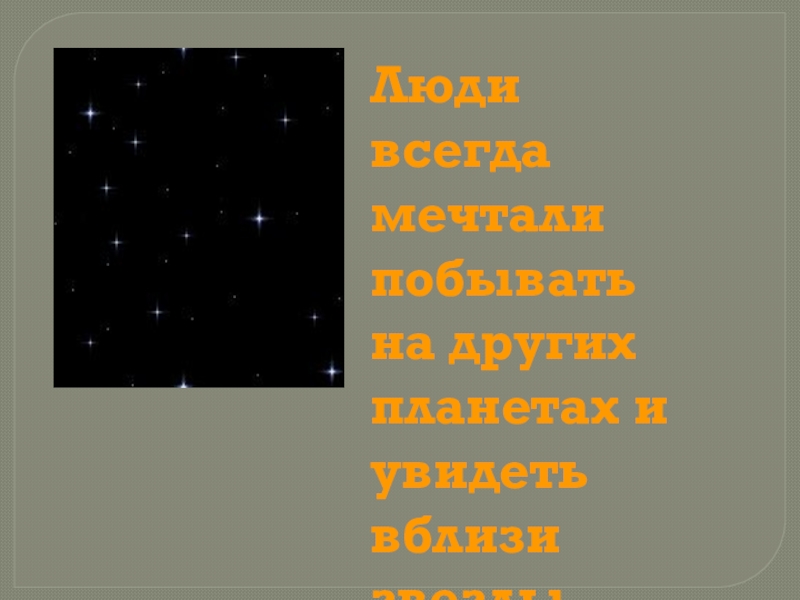 Людивсегда мечтали побывать на другихпланетах и увидетьвблизи звезды.