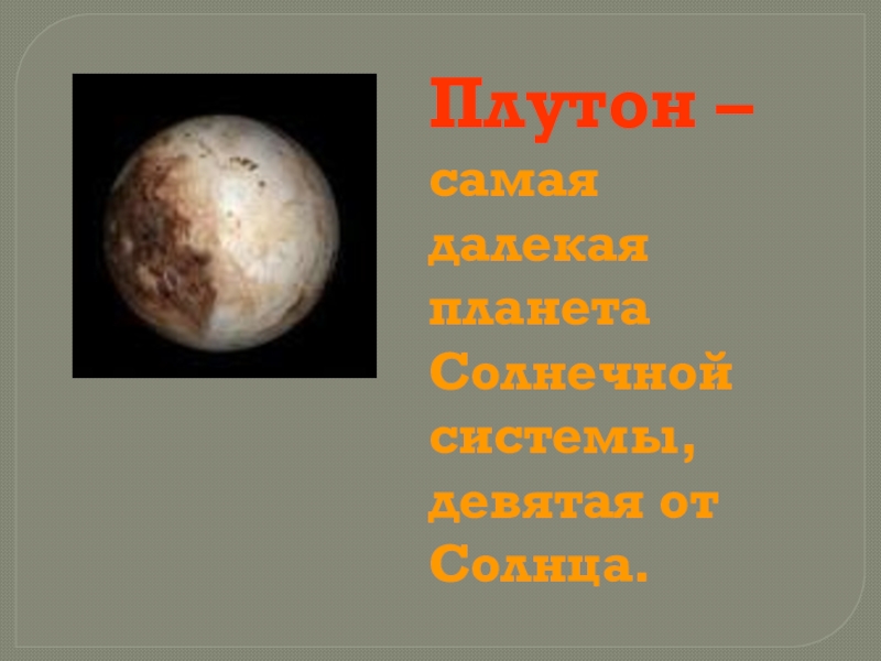 Плутон –самая далекая планетаСолнечной системы,девятая отСолнца.