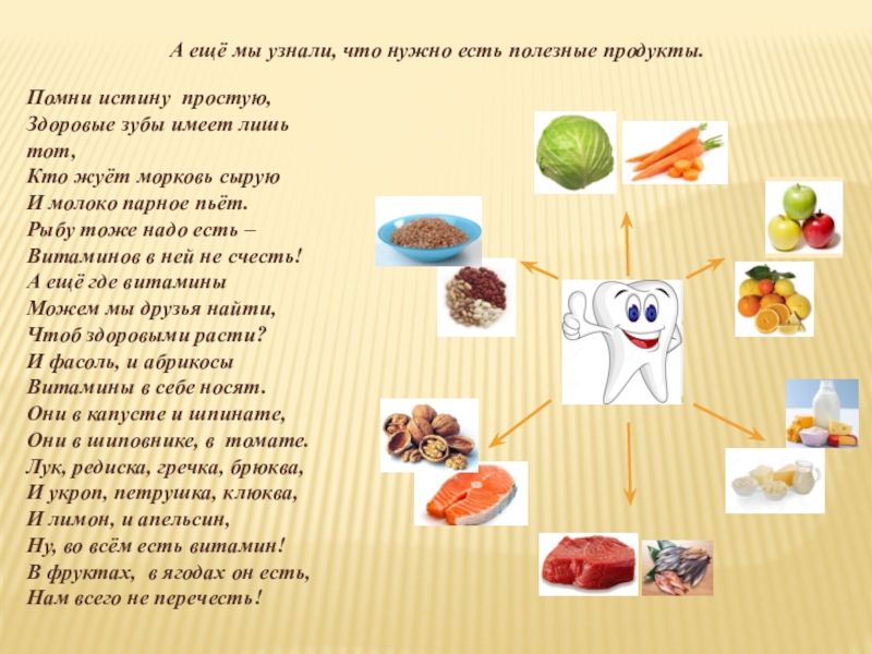 Слайд 13А ещё мы узнали, что нужно есть полезные продукты.