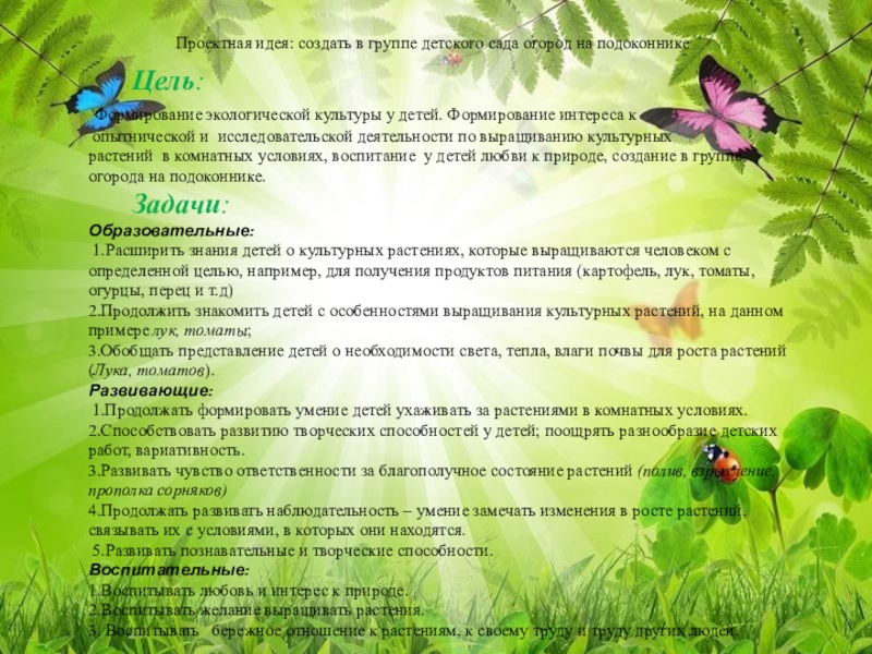 2.Дети получат представления о том, что растения живые, их поливают, сажают, выращивают.