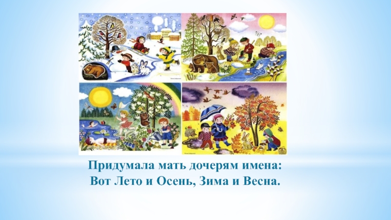 Слайд 3Придумала мать дочерям имена: Вот Лето и Осень, Зима и Весна.