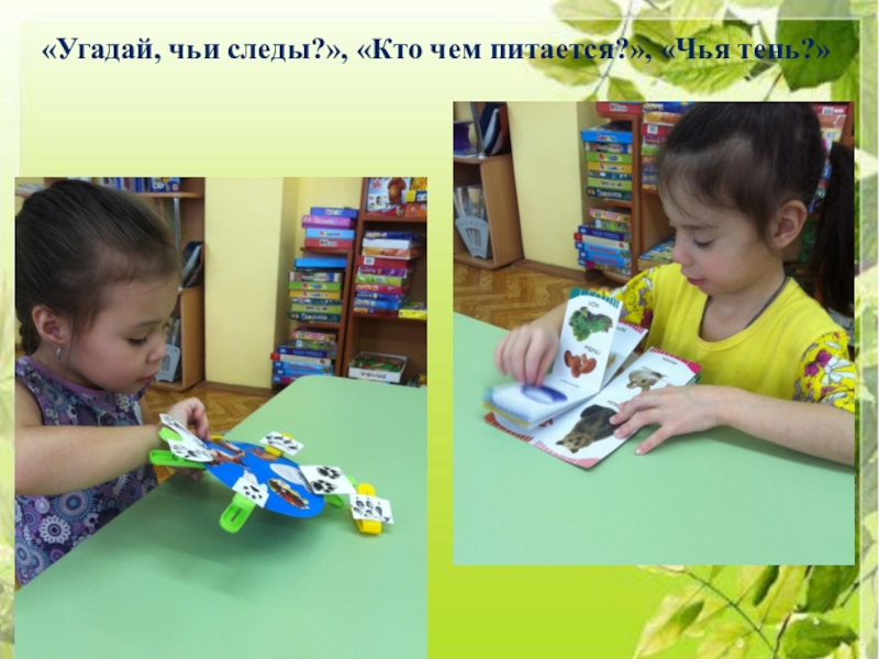 Слайд 19«Угадай, чьи следы?», «Кто чем питается?», «Чья тень?»
