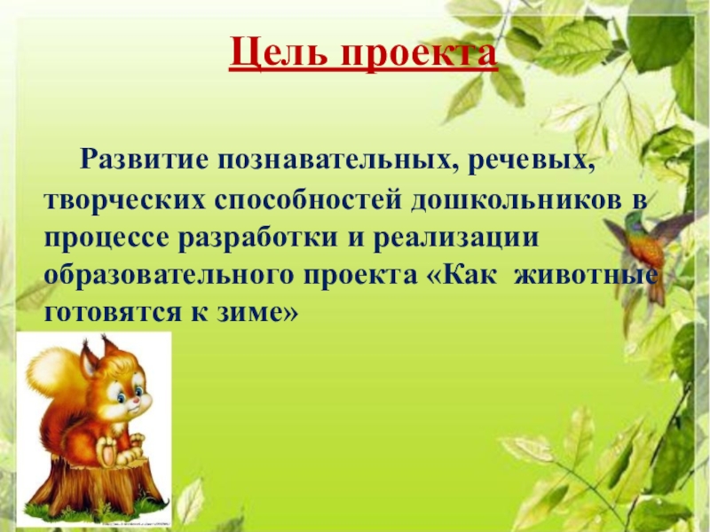 реализации образовательного проекта «Как животные готовятся к зиме»