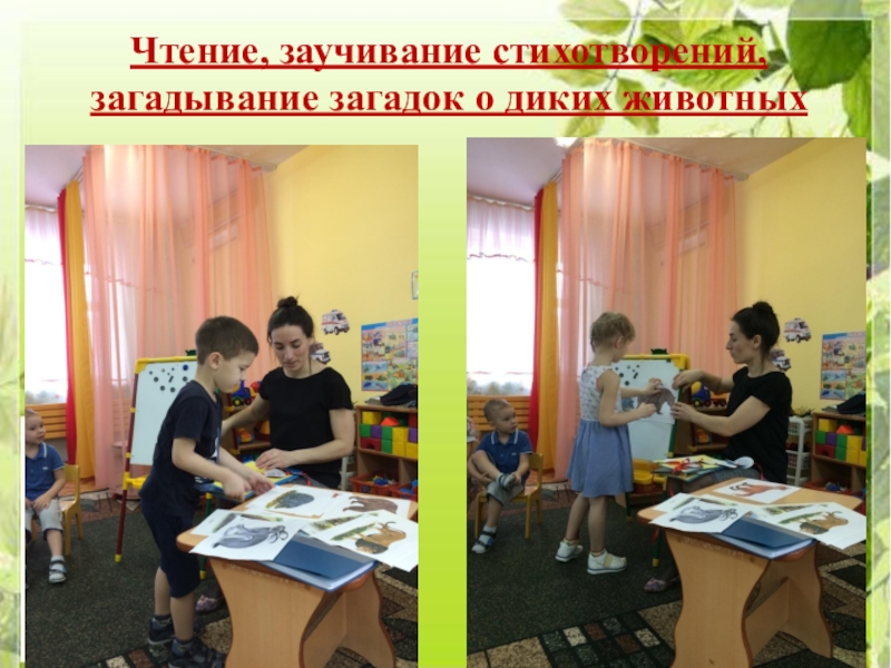 Слайд 12Чтение, заучивание стихотворений, загадывание загадок о диких животных