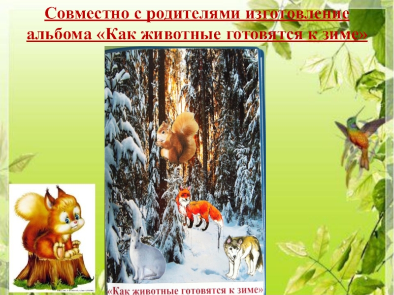 Слайд 40Совместно с родителями изготовление альбома «Как животные готовятся к зиме»