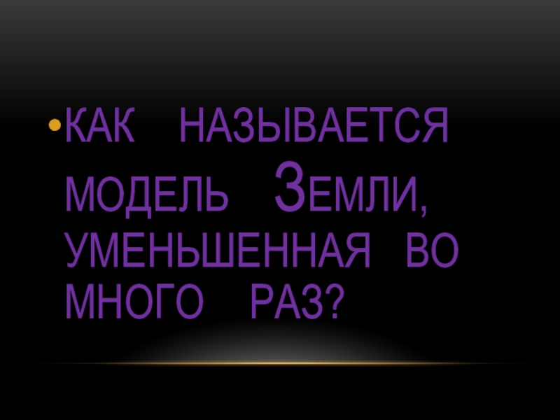 Слайд 4КАК НАЗЫВАЕТСЯ МОДЕЛЬ ЗЕМЛИ, УМЕНЬШЕННАЯ ВО МНОГО