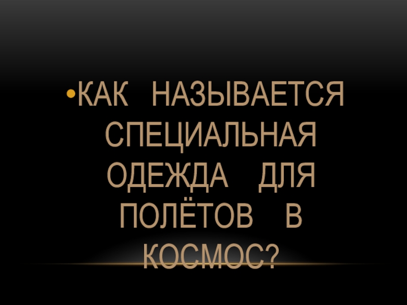 Слайд 12КАК НАЗЫВАЕТСЯ СПЕЦИАЛЬНАЯ ОДЕЖДА ДЛЯ ПОЛЁТОВ В КОСМОС?