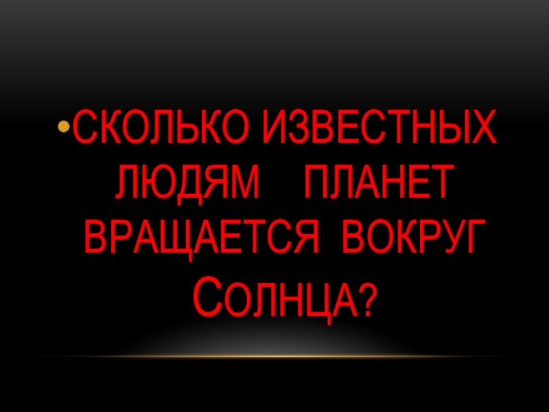 Слайд 18СКОЛЬКО ИЗВЕСТНЫХ ЛЮДЯМ ПЛАНЕТ ВРАЩАЕТСЯ ВОКРУГ СОЛНЦА?