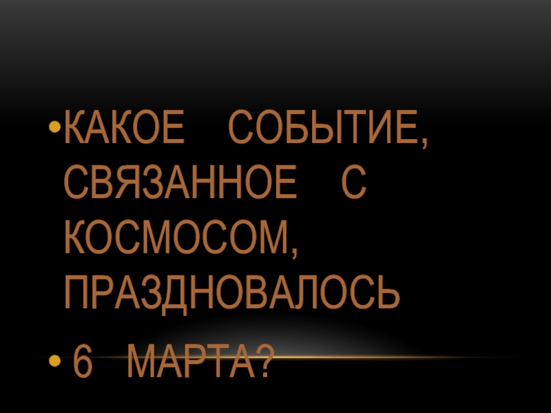 КАКОЕ  СОБЫТИЕ, СВЯЗАННОЕ  С КОСМОСОМ, ПРАЗДНОВАЛОСЬ 6  МАРТА?