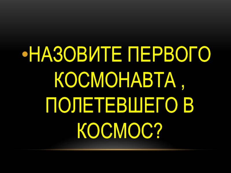 Слайд 8НАЗОВИТЕ ПЕРВОГО КОСМОНАВТА , ПОЛЕТЕВШЕГО В КОСМОС?