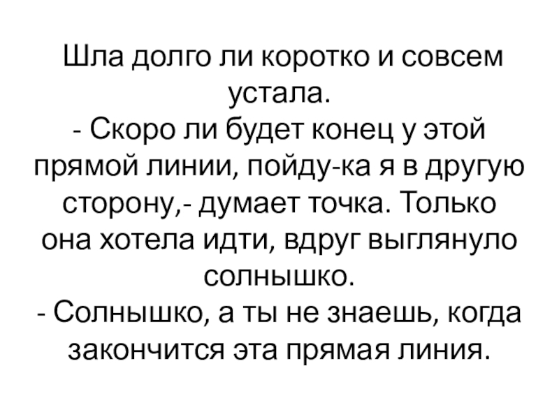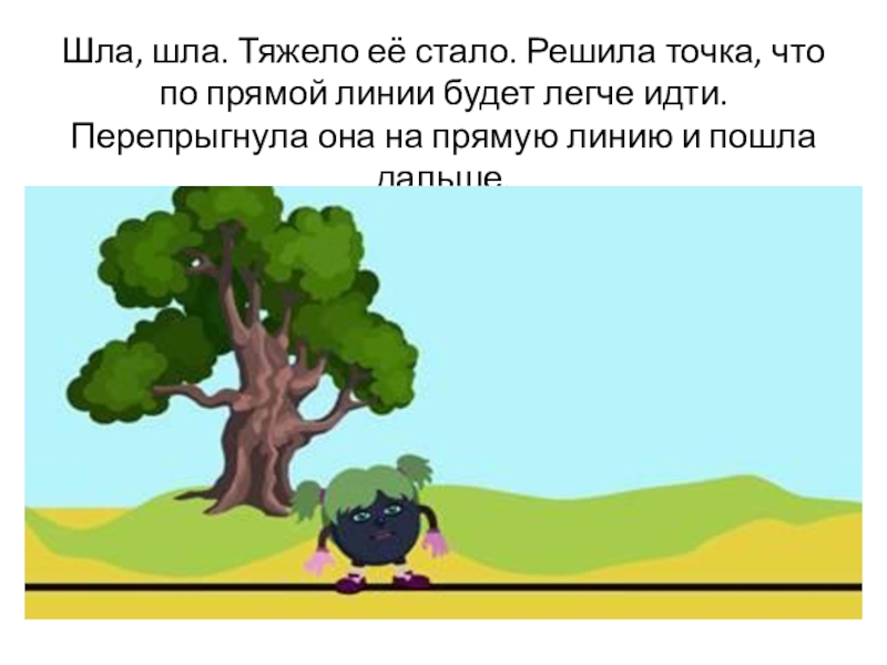 Слайд 6Шла, шла. Тяжело её стало. Решила точка, что по прямой линии
