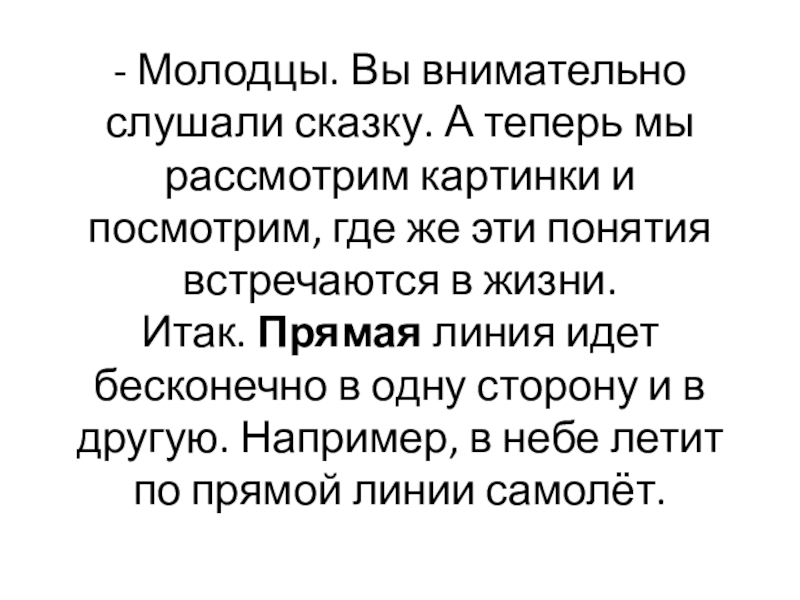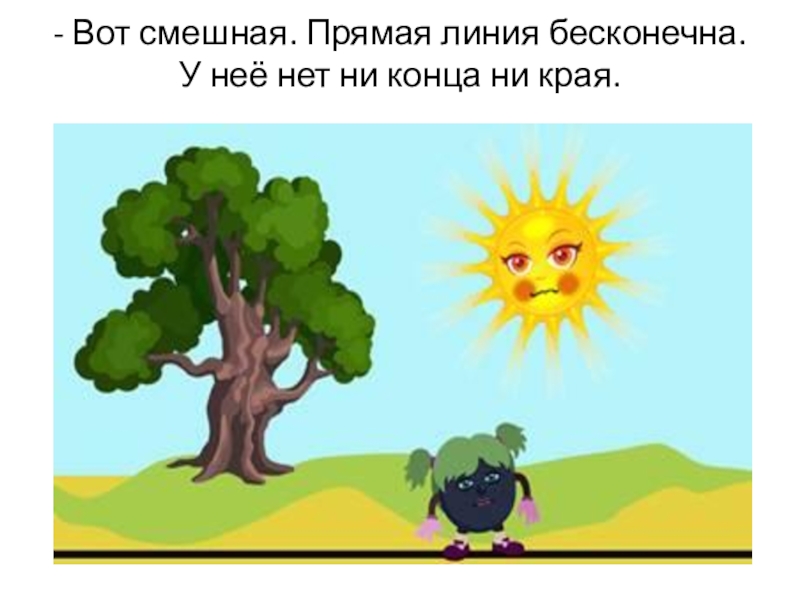 Слайд 8- Вот смешная. Прямая линия бесконечна. У неё нет ни конца