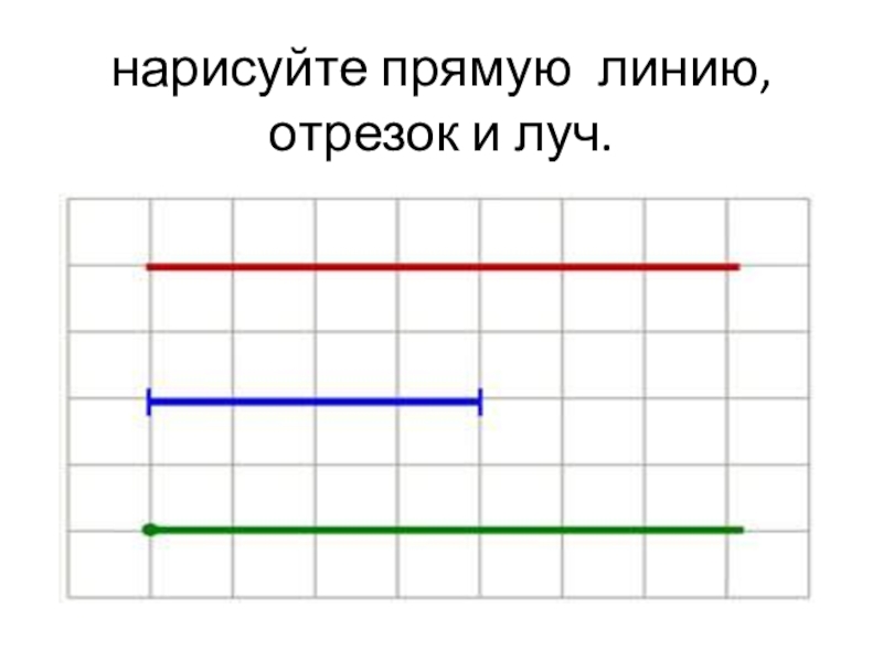 Слайд 14нарисуйте прямую  линию, отрезок и луч.