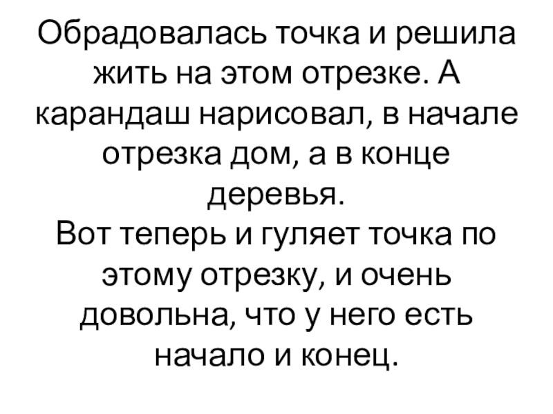 Слайд 11Обрадовалась точка и решила жить на этом отрезке. А карандаш нарисовал,