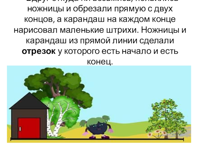 Слайд 10- Вдруг откуда ни возьмись, появились ножницы и обрезали прямую с