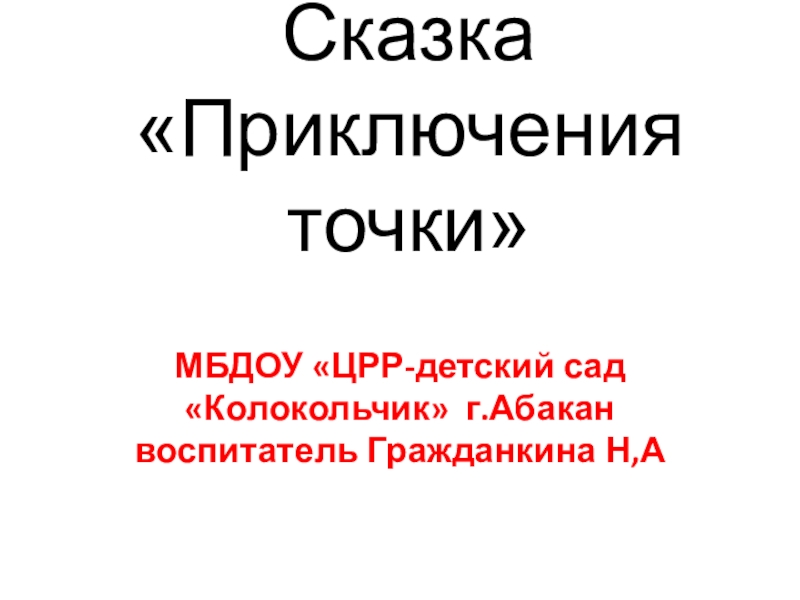 Сказка «Приключения точки»МБДОУ «ЦРР-детский сад «Колокольчик» г.Абакан воспитатель Гражданкина Н,А