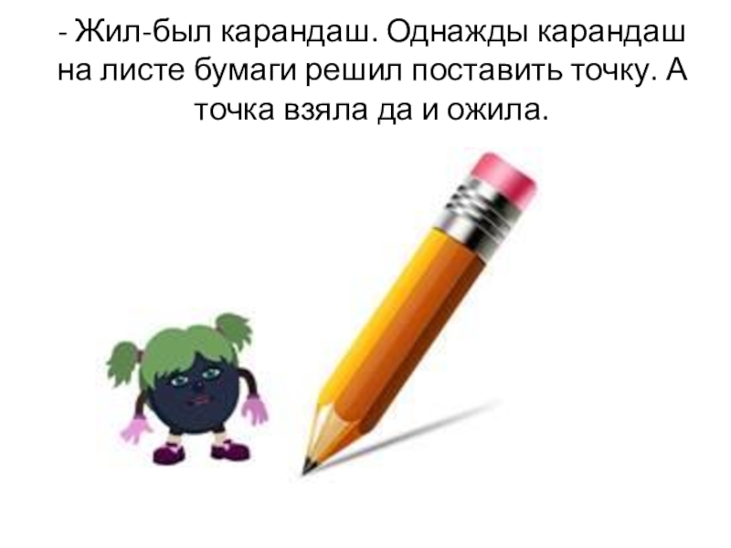 Слайд 4- Жил-был карандаш. Однажды карандаш на листе бумаги решил поставить точку.