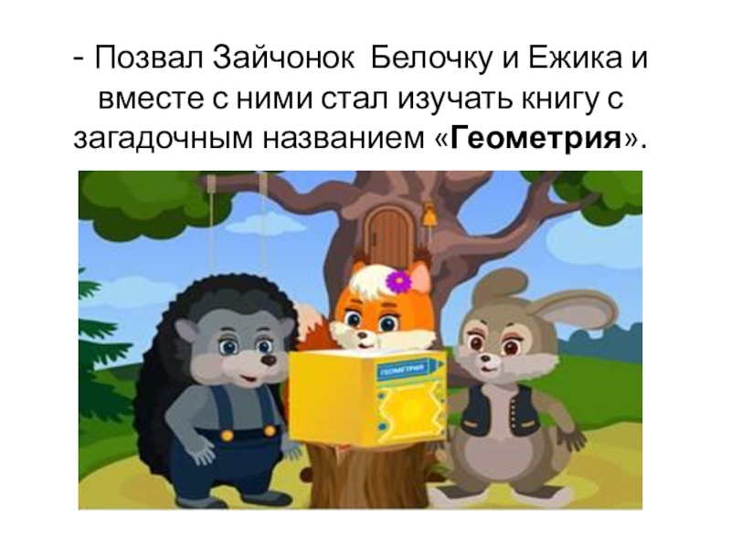 - Позвал Зайчонок Белочку и Ежика и вместе с ними стал изучать книгу с загадочным названием «Геометрия».
