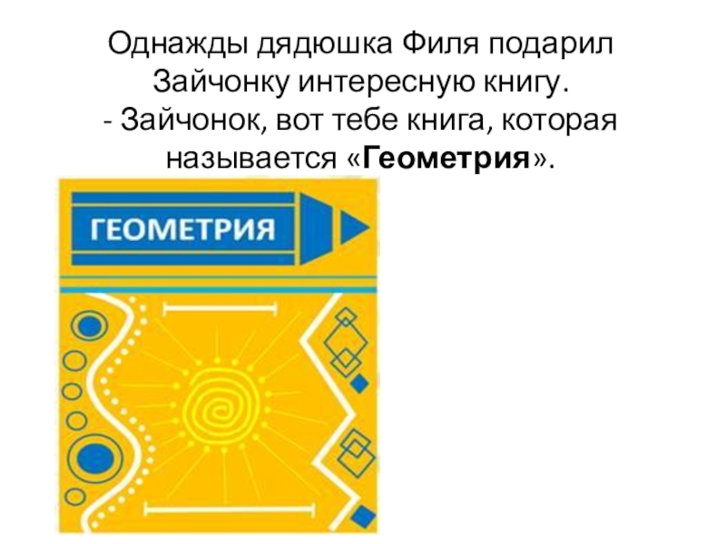 Однажды дядюшка Филя подарил Зайчонку интересную книгу. - Зайчонок, вот тебе книга, которая называется «Геометрия».