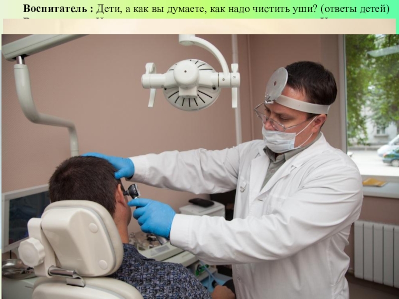 Слайд 8Воспитатель : Дети, а как вы думаете, как надо чистить уши? (ответы