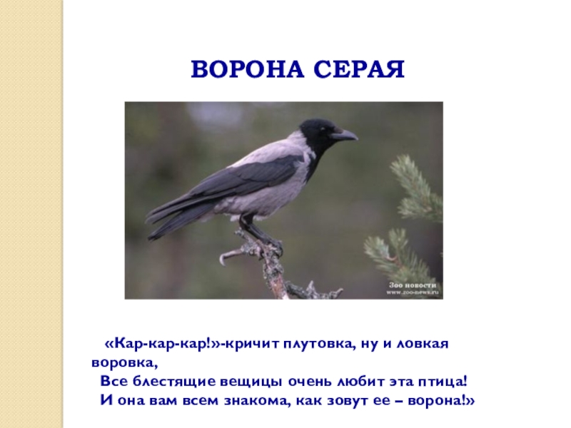 «Кар-кар-кар!»-кричит плутовка, ну и ловкая воровка,