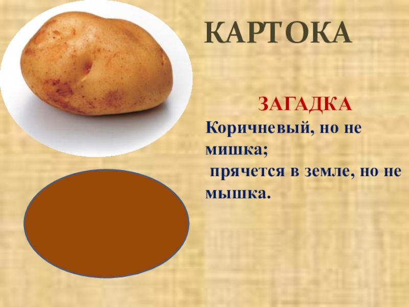 ЗАГАДКАКоричневый, но не мишка; прячется в земле, но не мышка.КАРТОКА