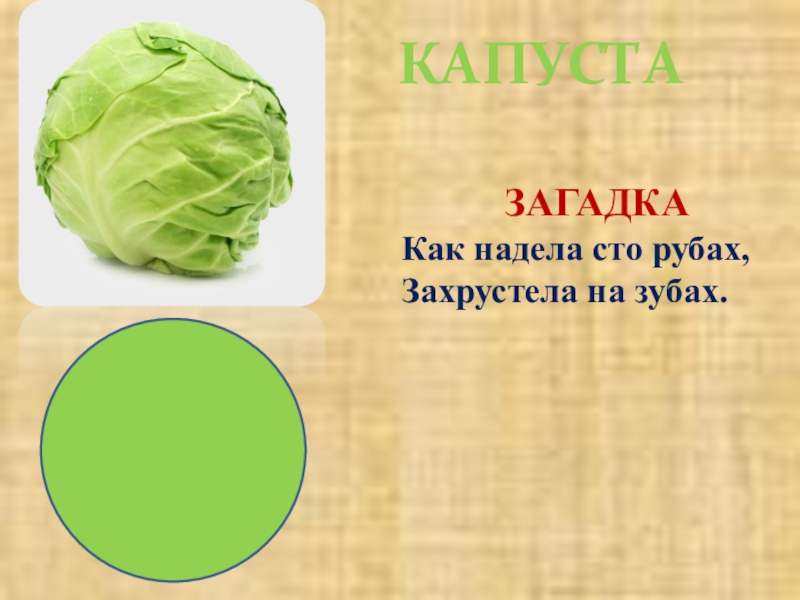 КАПУСТАЗАГАДКАКак надела сто рубах,Захрустела на зубах.