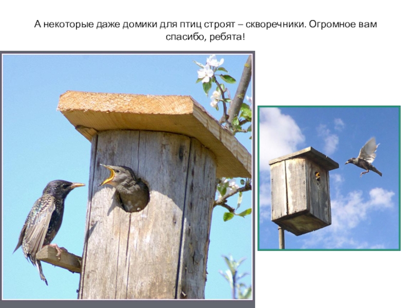 Слайд 22А некоторые даже домики для птиц строят – скворечники. Огромное вам