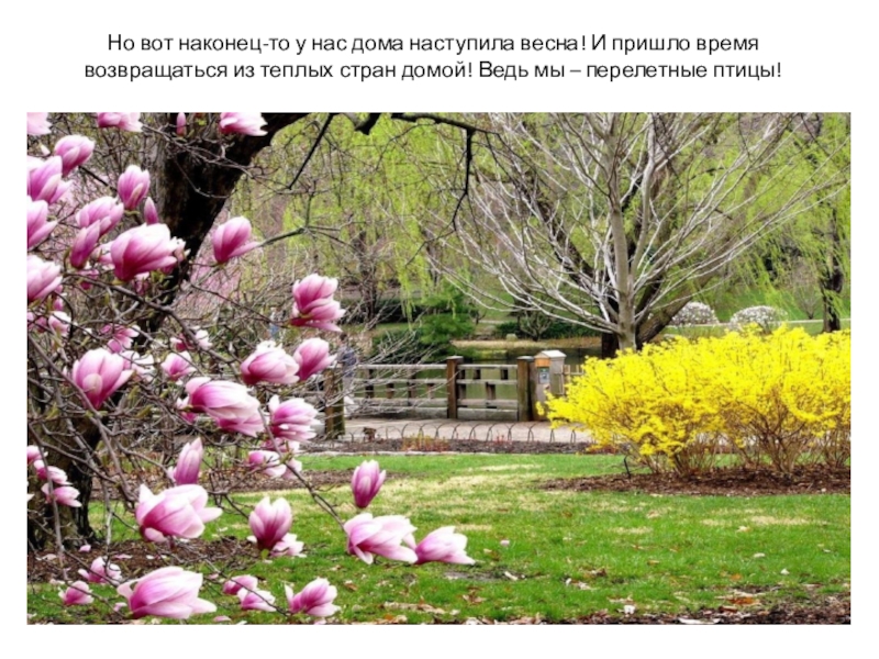 Но вот наконец-то у нас дома наступила весна! И пришло время возвращаться из теплых стран домой! Ведь