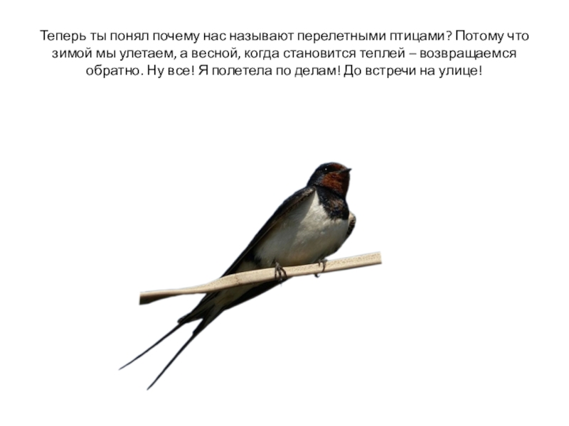 Слайд 23Теперь ты понял почему нас называют перелетными птицами? Потому что зимой