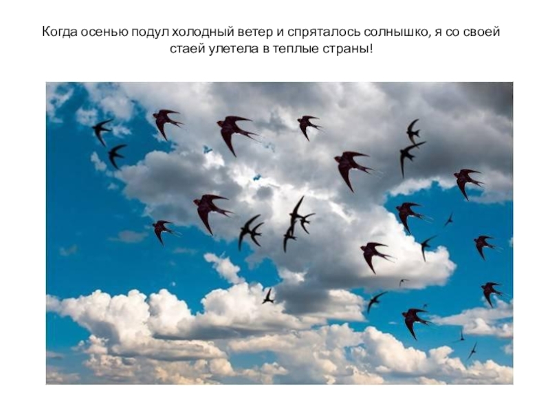 Когда осенью подул холодный ветер и спряталось солнышко, я со своей стаей улетела в теплые страны!