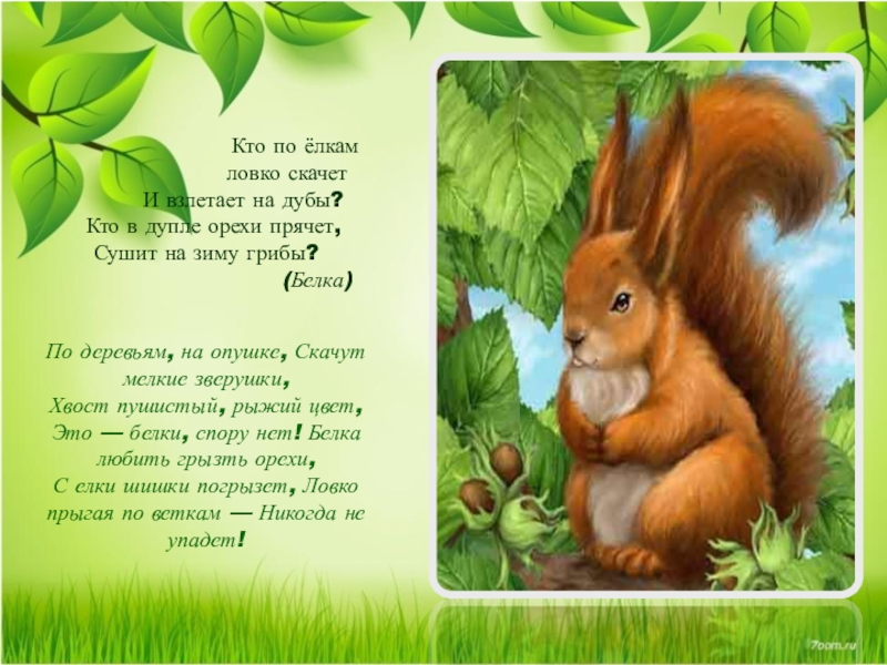 Это — белки, спору нет! Белка любить грызть орехи,