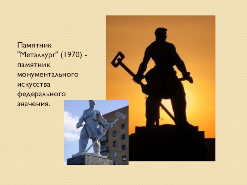 Слайд 4Памятник "Металлург" (1970) - памятник монументального искусства федерального значения.