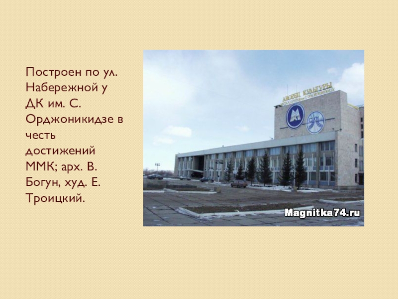 достижений ММК; арх. В. Богун, худ. Е. Троицкий.