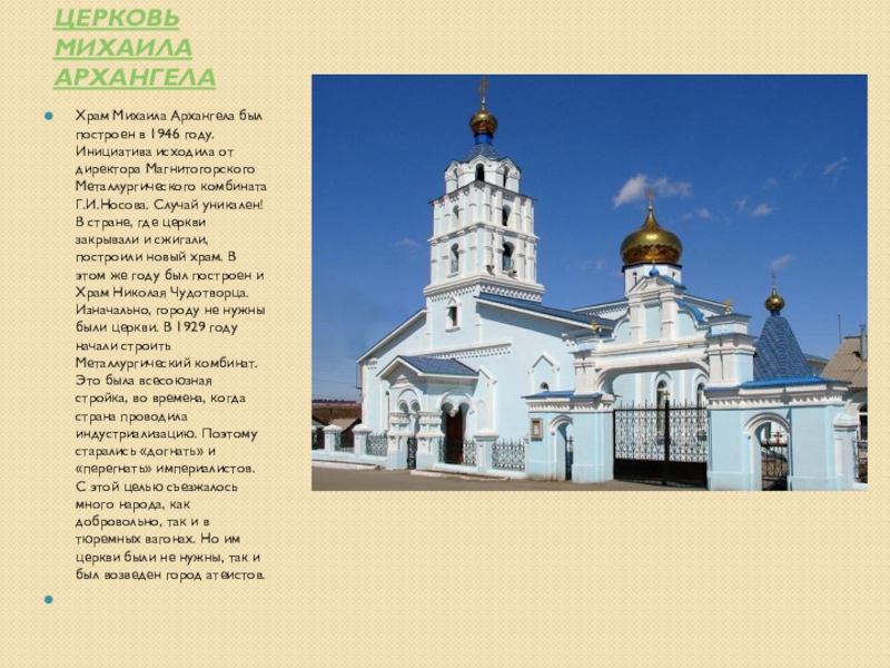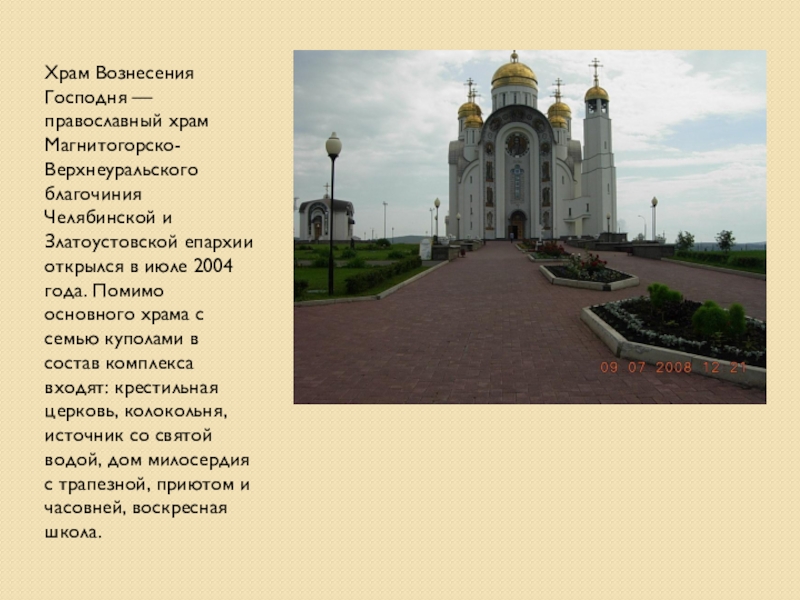 Слайд 19Храм Вознесения Господня — православный храм Магнитогорско-Верхнеуральского благочиния Челябинской и Златоустовской
