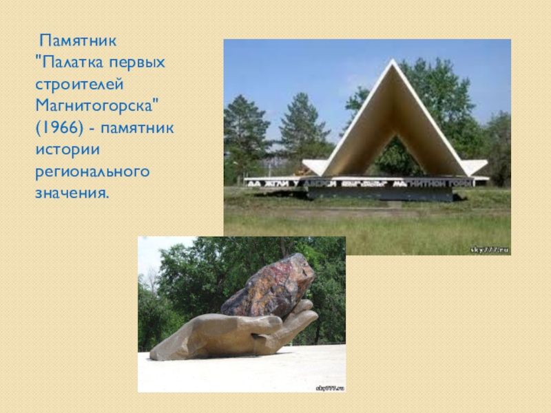 Слайд 6 Памятник "Палатка первых строителей Магнитогорска" (1966) - памятник истории регионального