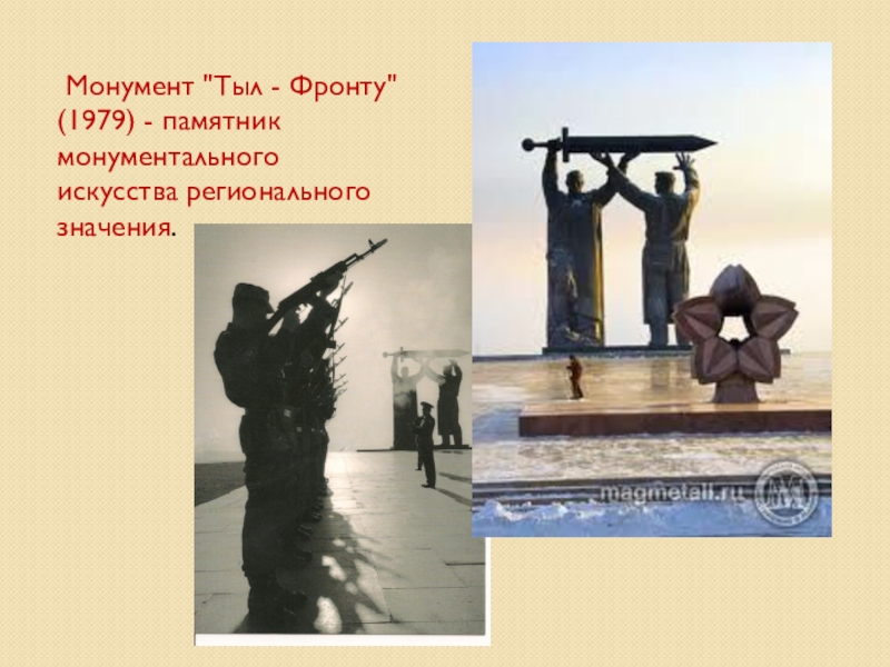 Слайд 9 Монумент "Тыл - Фронту" (1979) - памятник монументального искусства регионального