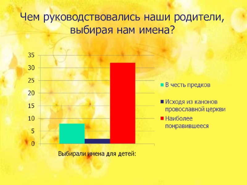 Слайд 30Чем руководствовались наши родители, выбирая нам имена?